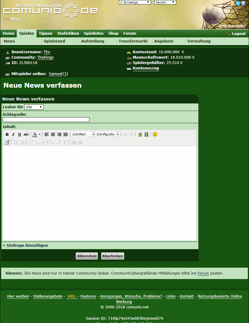Für nur 13,80 EUR kannst Du bis zum Abschluss der Meisterschaftsrunde der Saison 2025/2026 an einer Comduo.de Pro Player Community teilnehmen! Als Comduo.de Pro Player stehen Dir neben allen Features des Comduo.de Plus Players zusätzlich noch zur Verfügung: